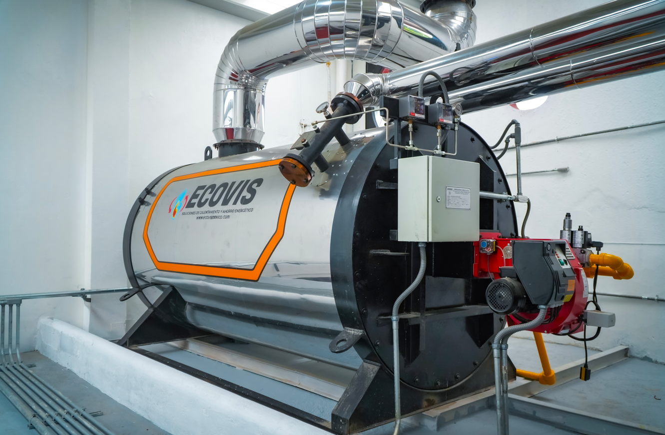 Calderas pirotubulares ECOVIS diseñadas para alta eficiencia y ahorro de combustible. Compactas, automáticas y de rápida evaporación. Capacidades desde 60 hasta 1500 HP, presión hasta 28 kg/cm² y eficiencia del 93%. Funcionan con Gas LP, Natural, Diésel o Combustóleo.